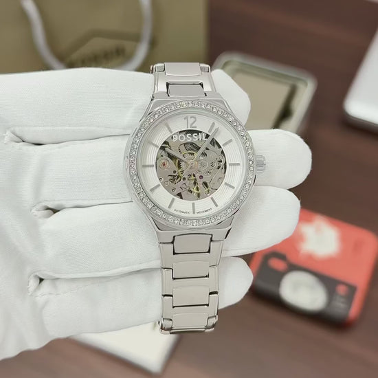 Add a distinctive flaire to your wardrobe with our new Fossil sleek mechanical watch Collection with explode skeleton dial ✅